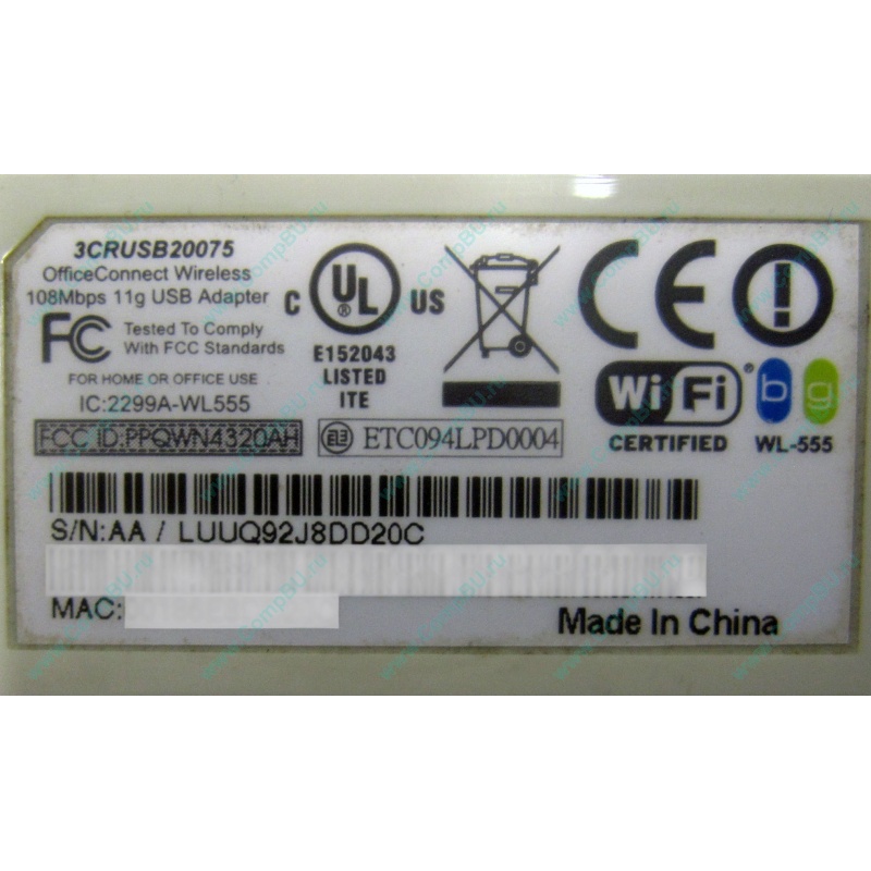 WiFi адаптер 3COM 3CRUSB20075 WL-555 внешний (USB)
