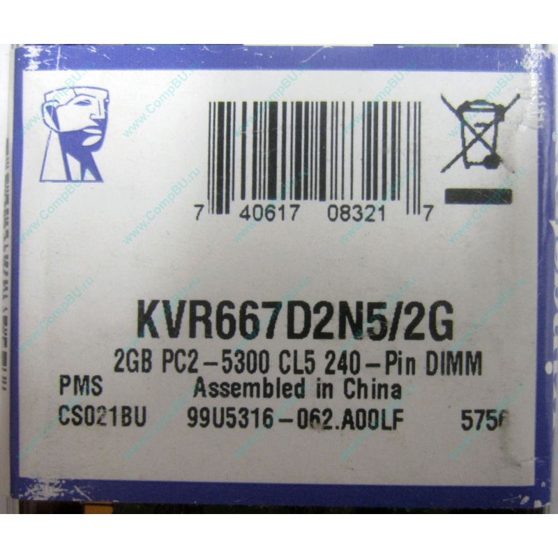 Новый запечатанный модуль оперативной памяти 2048 Mb DDR 2 Kingston KVR667D2N5/2G pc2-5300 CL5 99U5316-062.A00LF 1.8V